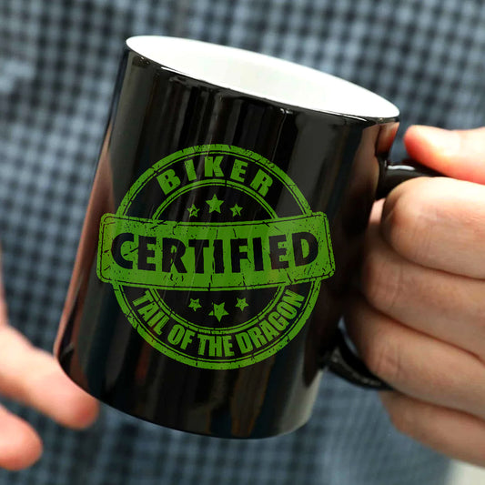Tail Of The Dragon BIKER, Black Glossy Mug